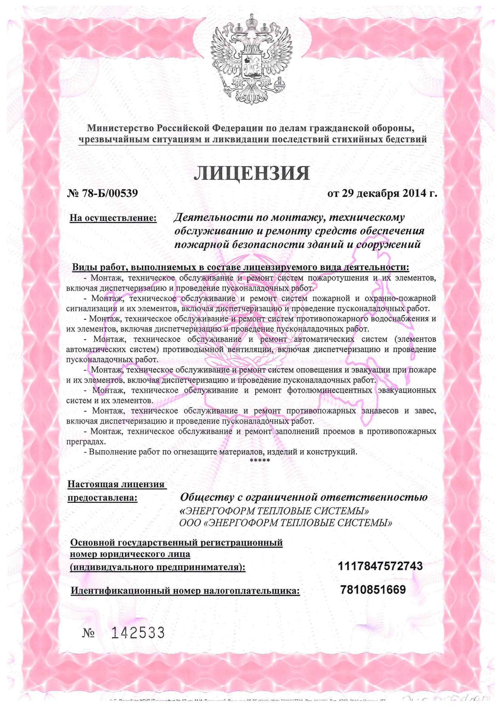 Наша компания имеет лицензию МЧС и готова выполнить весь комплекс работ «под ключ» от технического обследования объекта, составления проекта, до проведения пуско-наладочных работ и ввода системы в работу.